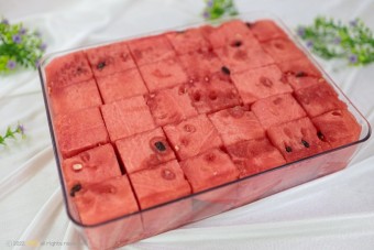 다음으로 수박 보관법에 대해 알아보겠습니다. 수박은 크기가 커서 한번 먹고 남게 되는데요, 잘못 보관시에는 복통을 일으킬수 있습니다. 먼저 수박은 흐르는 물에 겉면을 씻어 줍니다. 그리고 남은 수박은 껍질을 모두 잘라내고 먹기 좋은 크기로 자릅니다. 자른 수박은 밀폐용기에 넣어 냉장 보관 하시면 됩니다. 일반적으로 랩을 씌워 보관하는데, 이렇게 되면 세균수가 엄청나게 증가한다고 합니다.