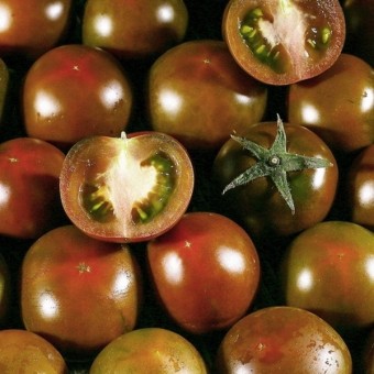 검붉은 빛을 띄며 초록빛이 도는 토마토로 '쿠마토'라는 상품명으로 판매되고 있습니다. 완숙토마토의 부드러움과 달리 육질이 단단하고 맛은 일반 토마토보다 새콤달콤합니다. 일반 토마토보다 리코펜의 함량이 높아 항산화작용과 항암 효과를 볼 수 있다고 합니다.